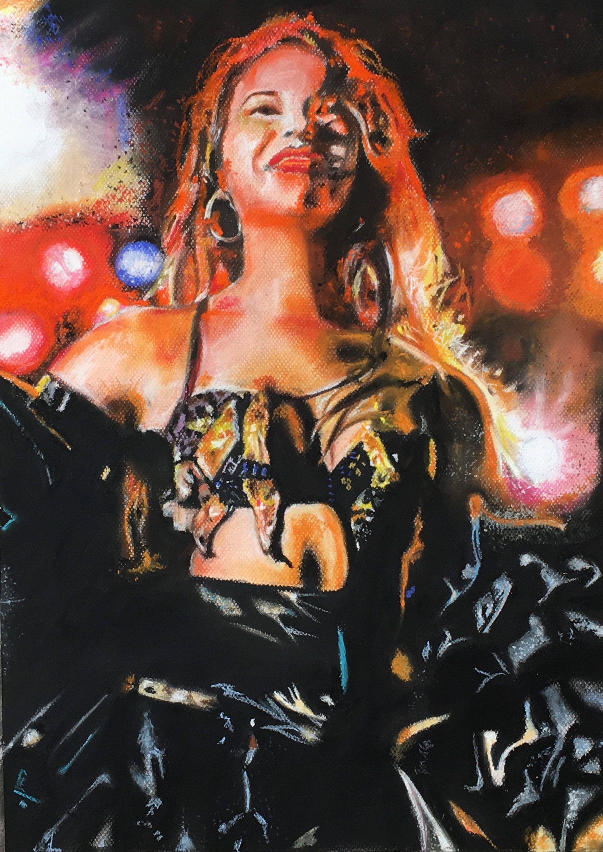 SOLD Original Beyoncé inspired art, soft pastel on paper 21×17″. Price does not include shipping