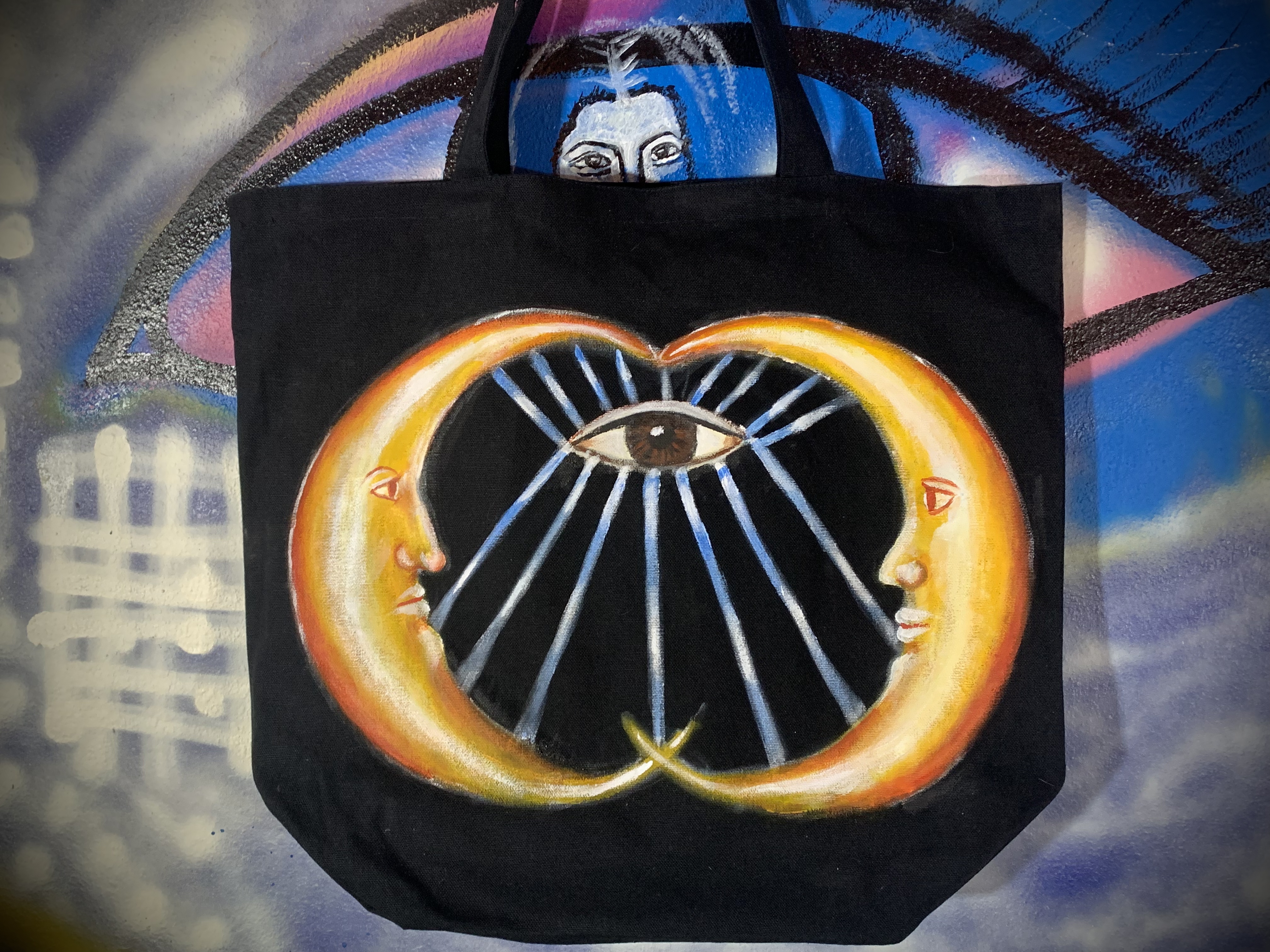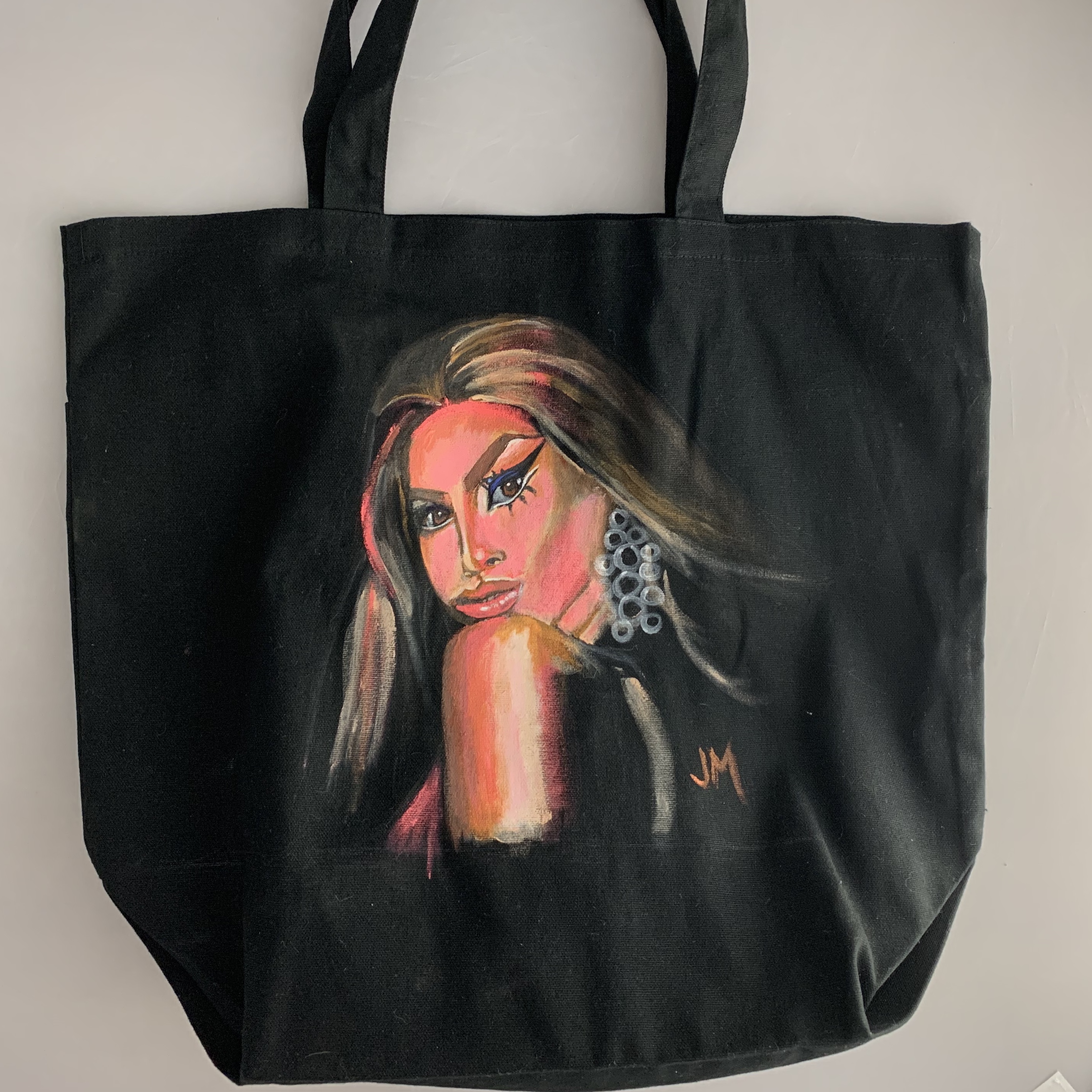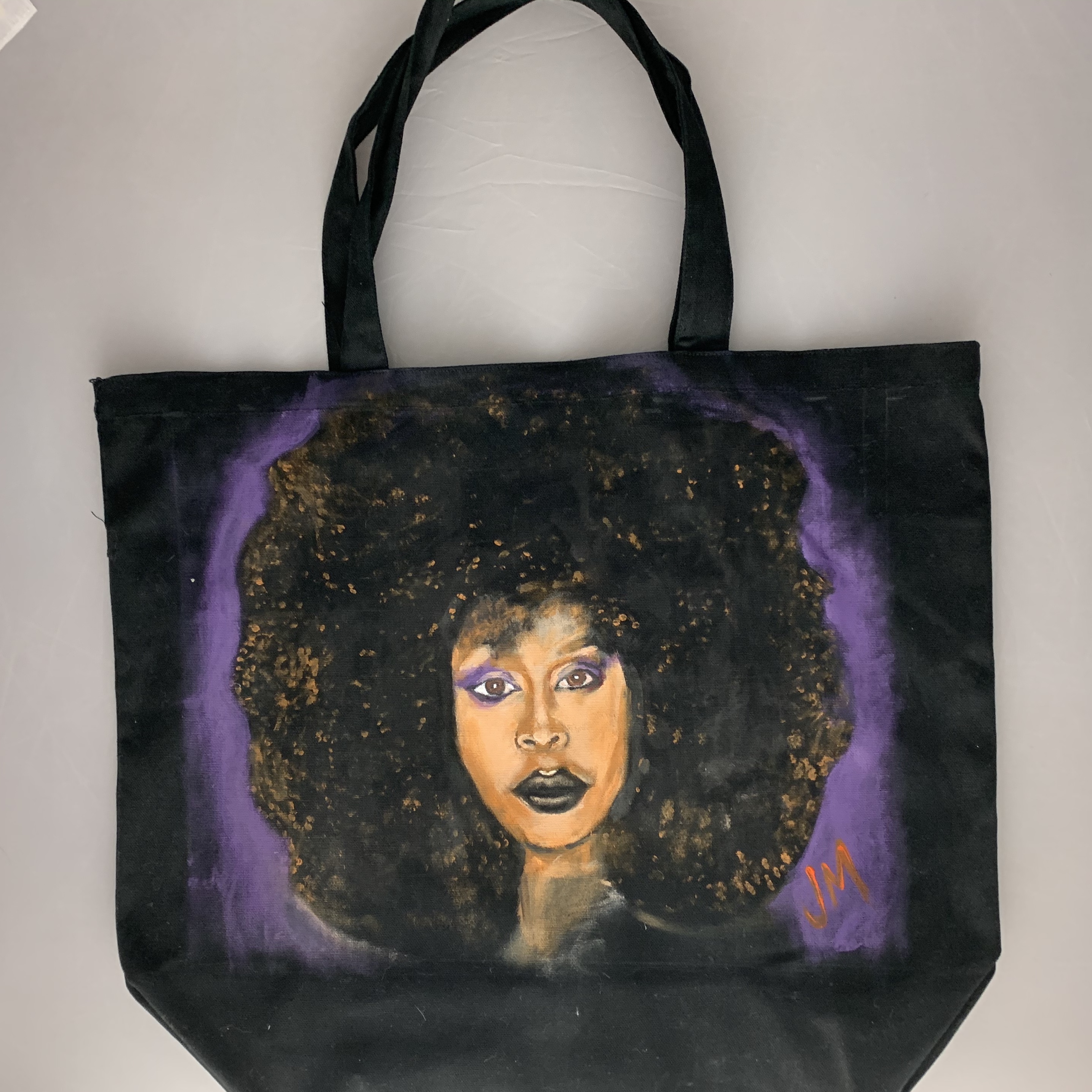 SOLD Hand-painted, one-of-a-kind tote for all the Badu lovers! Price includes shipping. For local inquiries, send email for pricing.