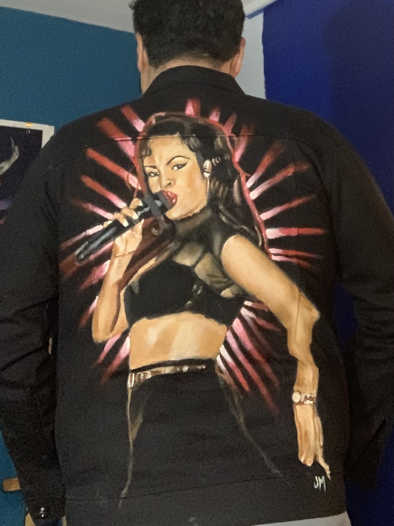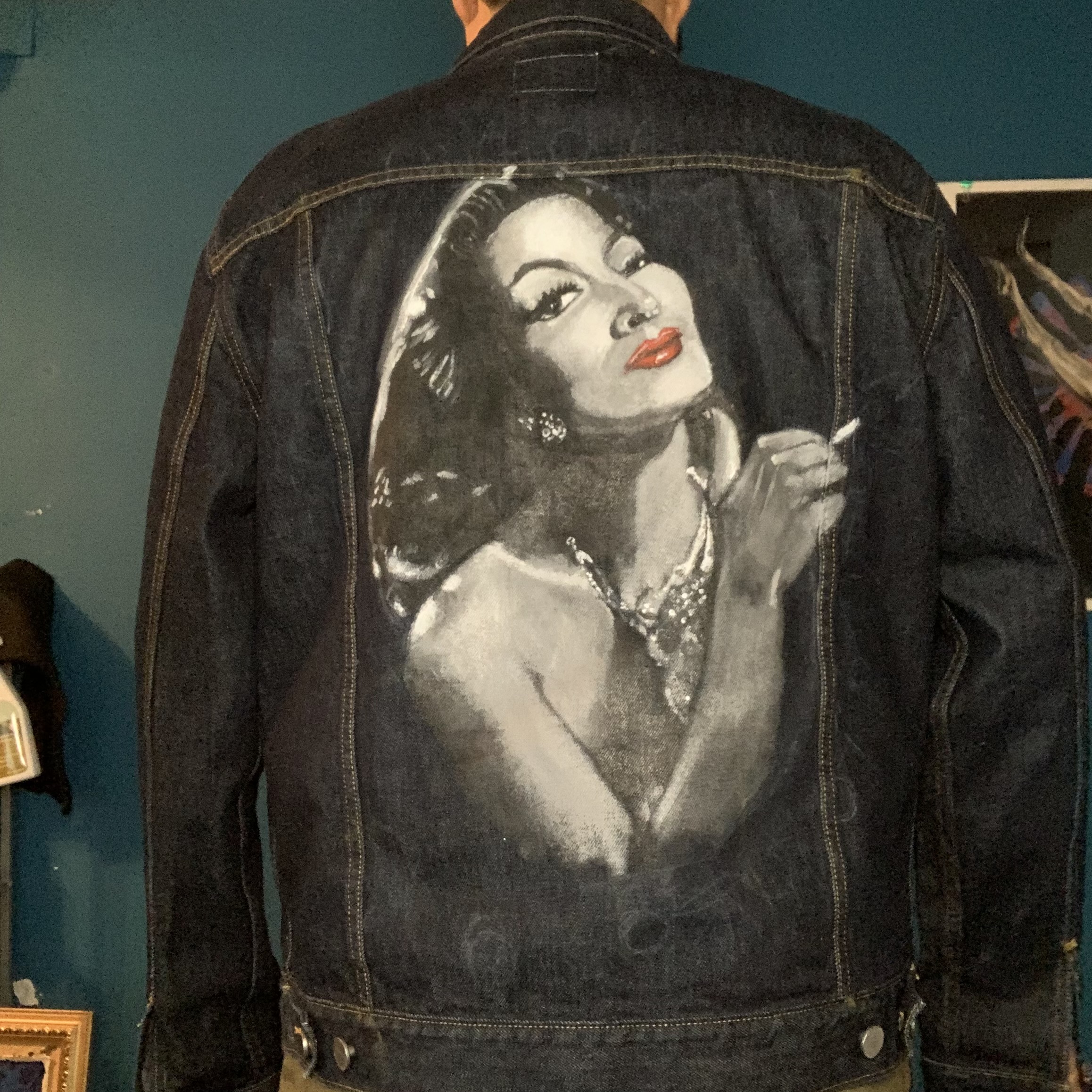 SOLD Selena acrylic on demin Size: Large (but fits like medium) Price does not include shipping